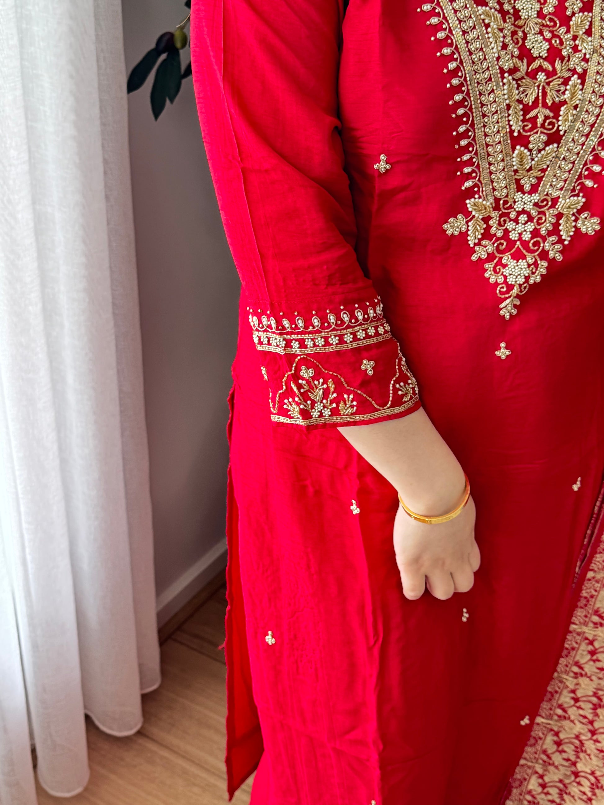 Premium quality silk straight suit with banarsi dupatta And plazzo pants