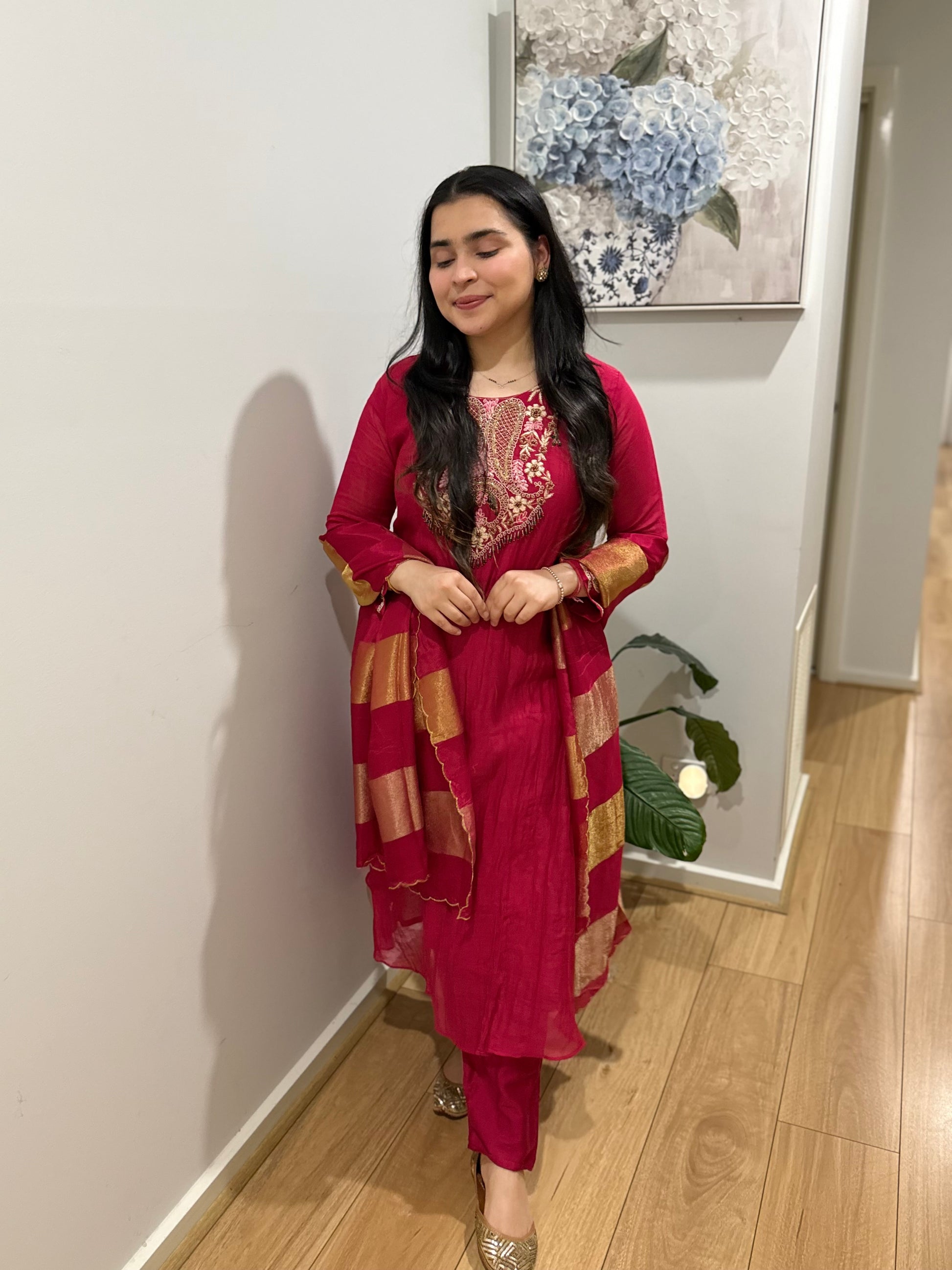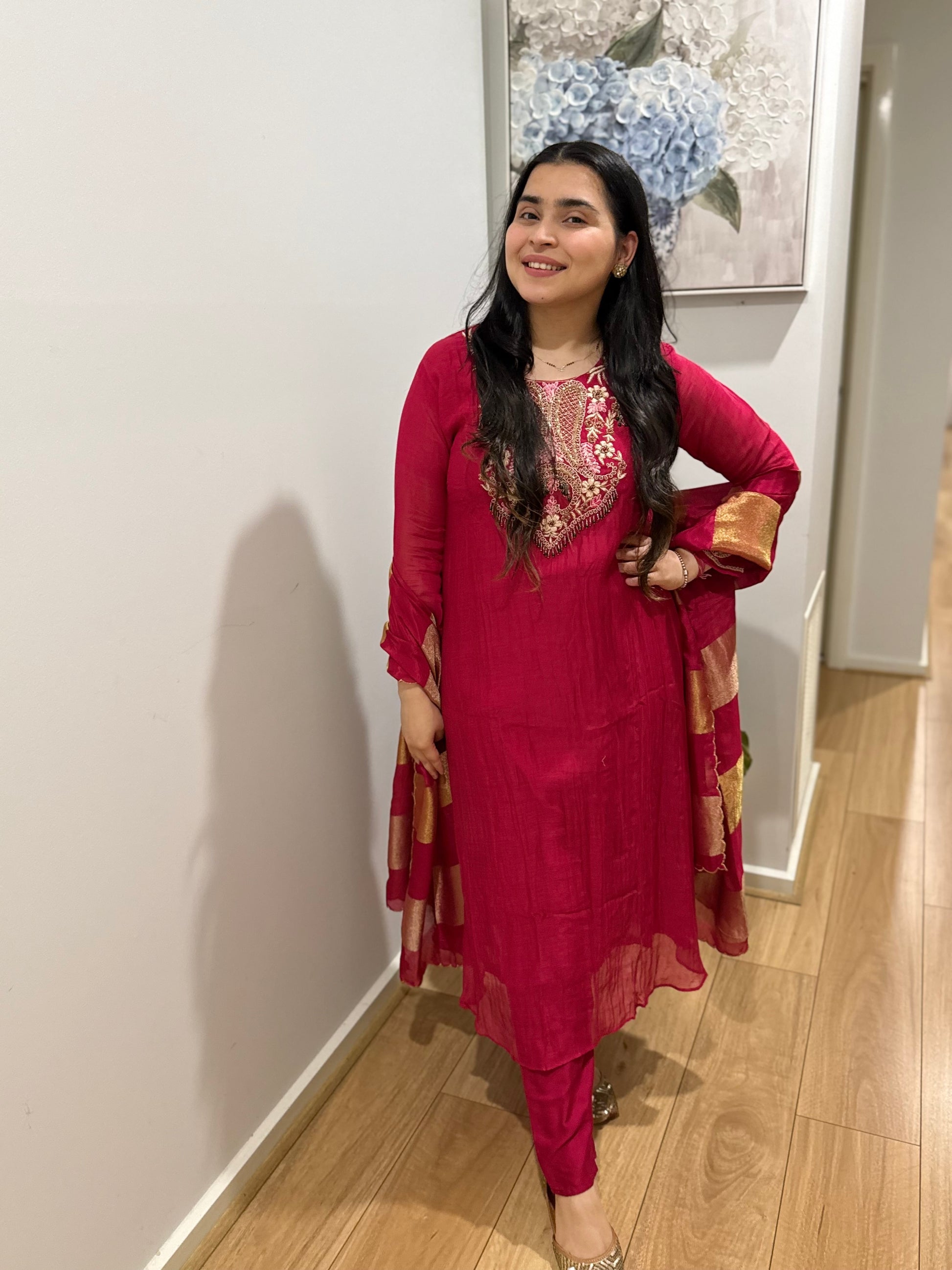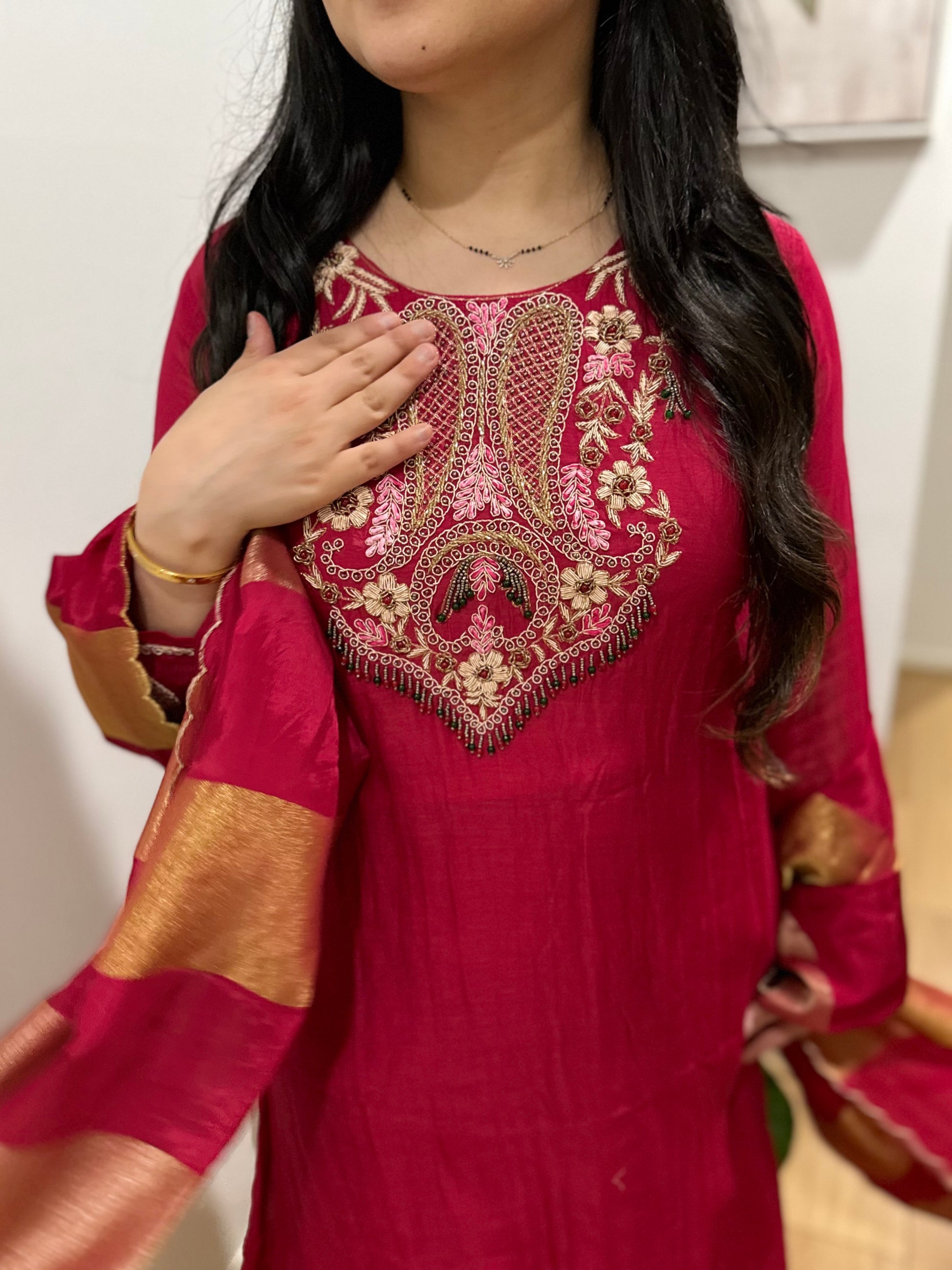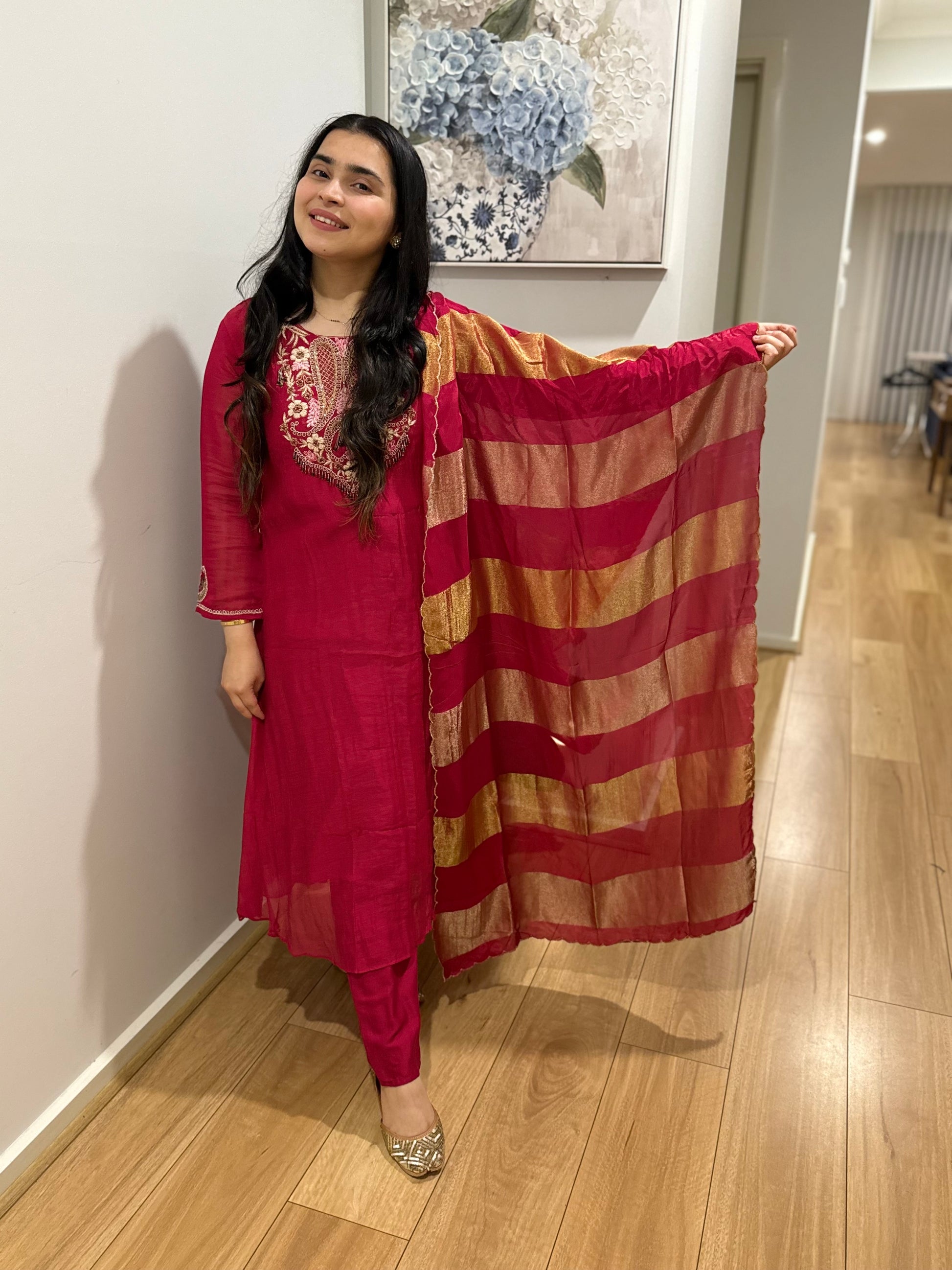 Mulchanderi fabric with lining, handwork and straight pants and dupatta
