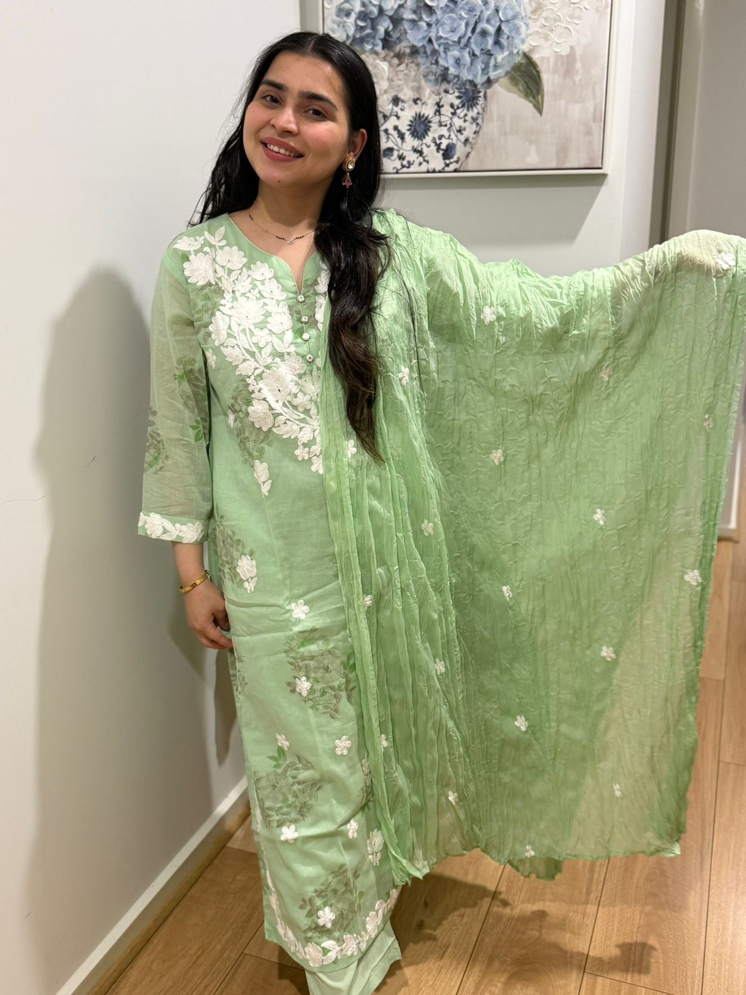 Pure mul cotton straight suit with dupatta and straight pants