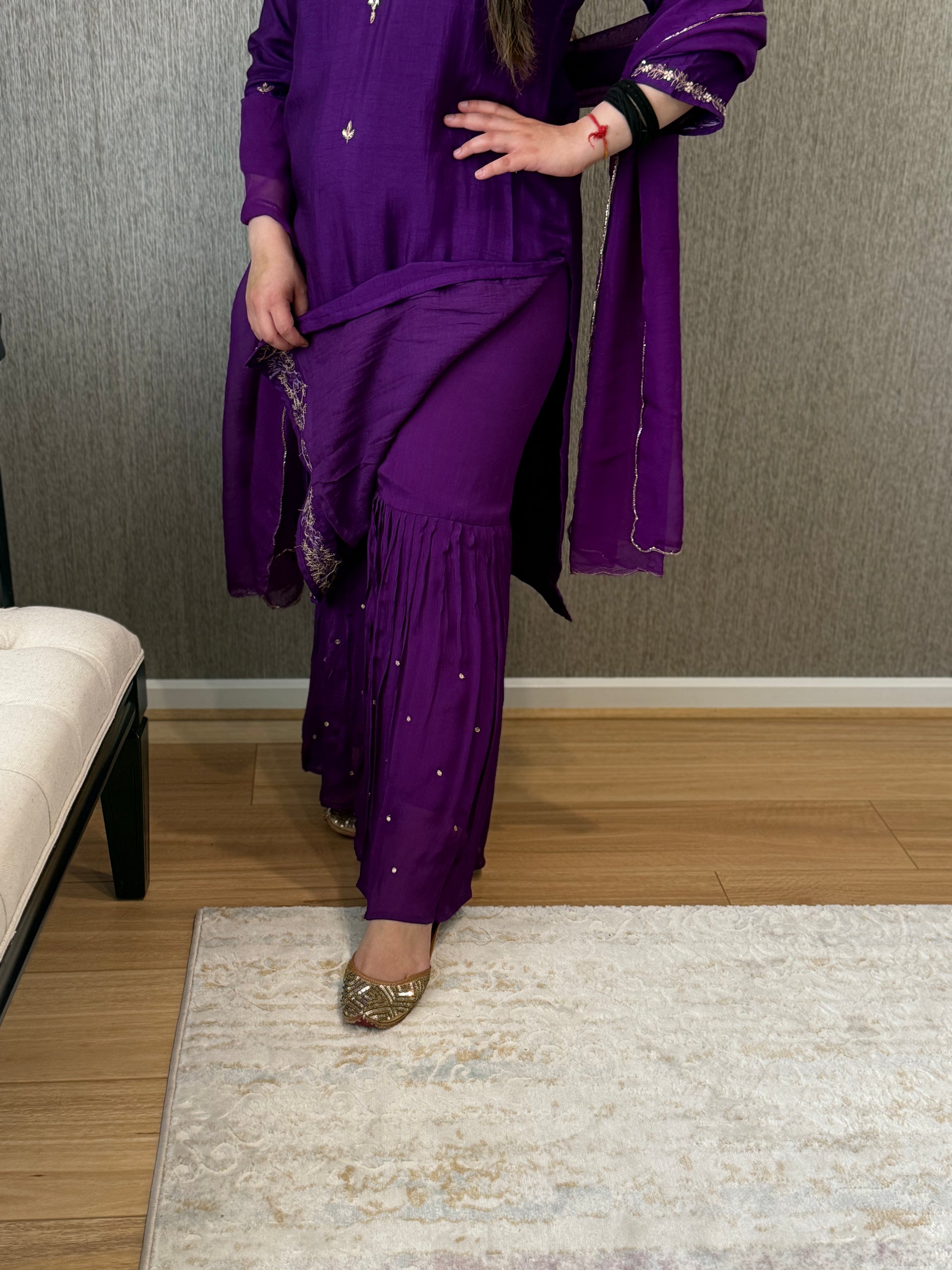 Premium quality silk suit with tissue dupatta and sharara pants