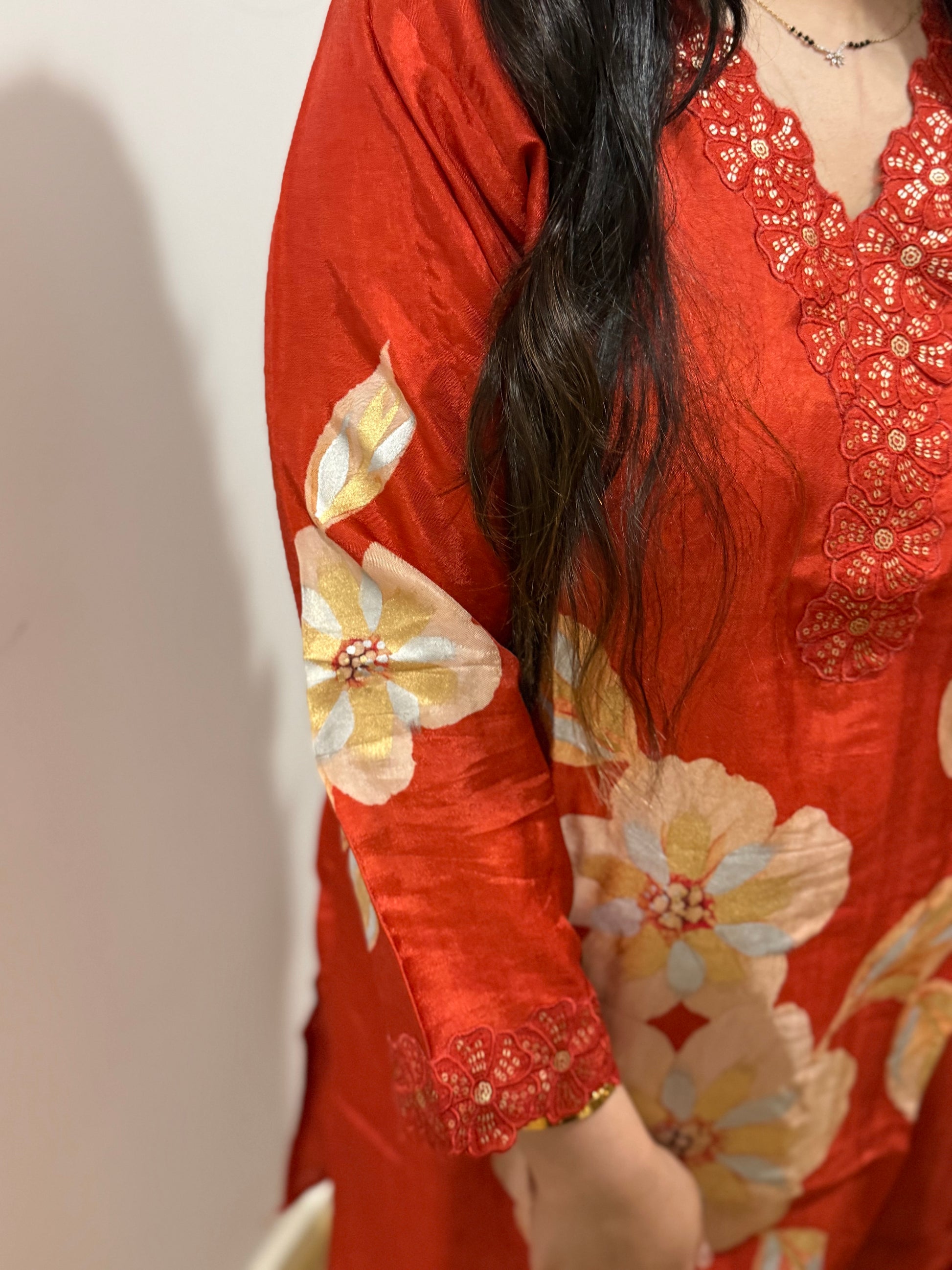 Premium quality silk suit with farshi salwar and tissue dupatta