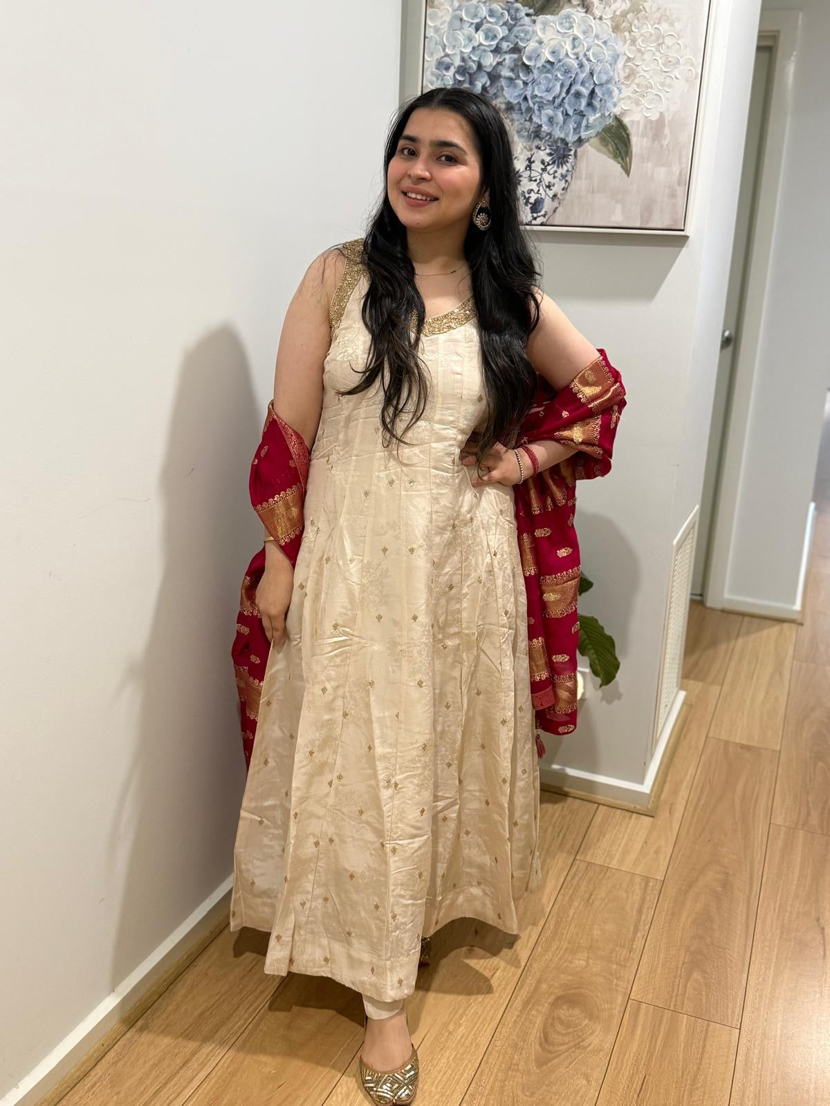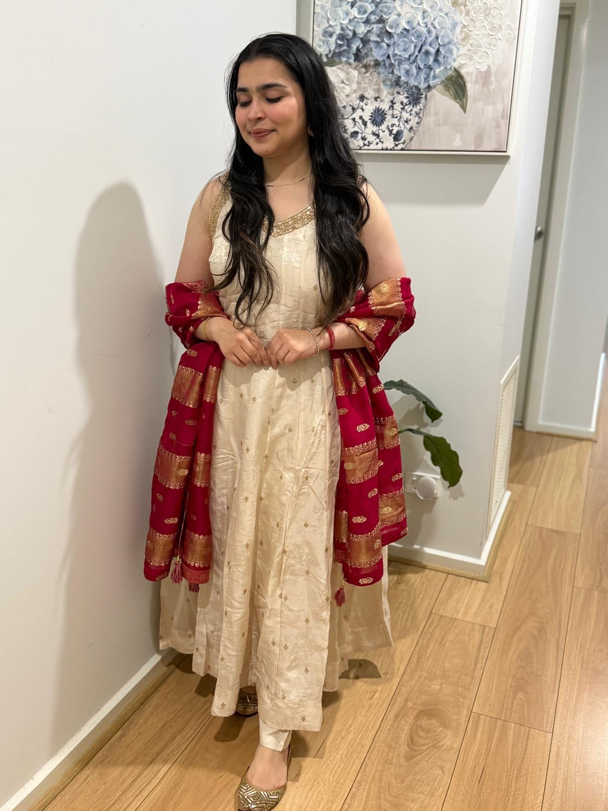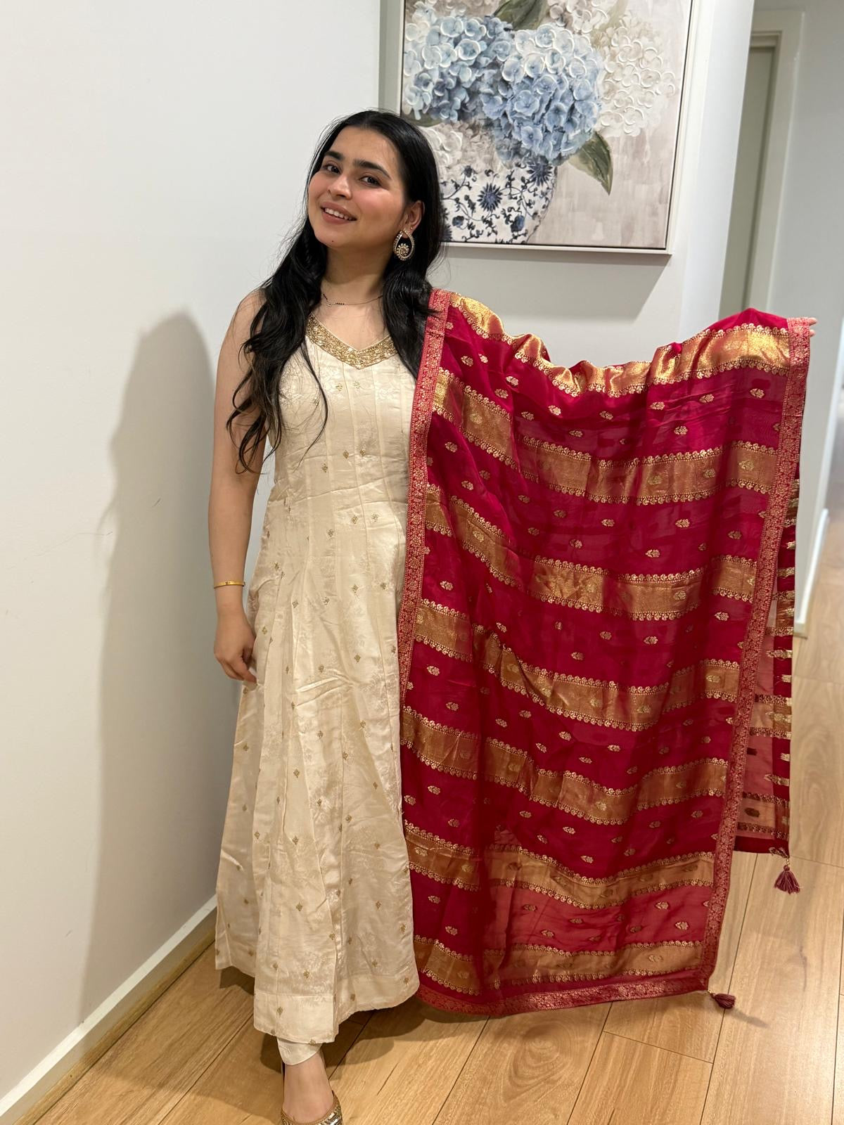 Premium quality silk anarkali suit with pants and silk dupatta
