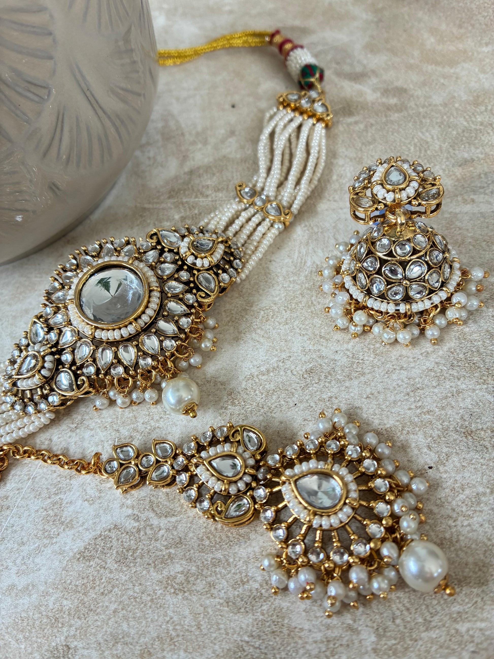 Kundan necklace with earrings and tikka