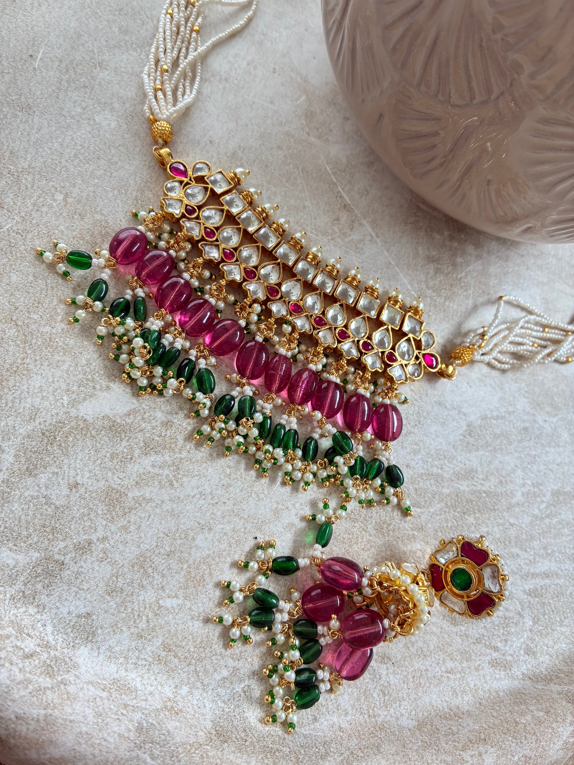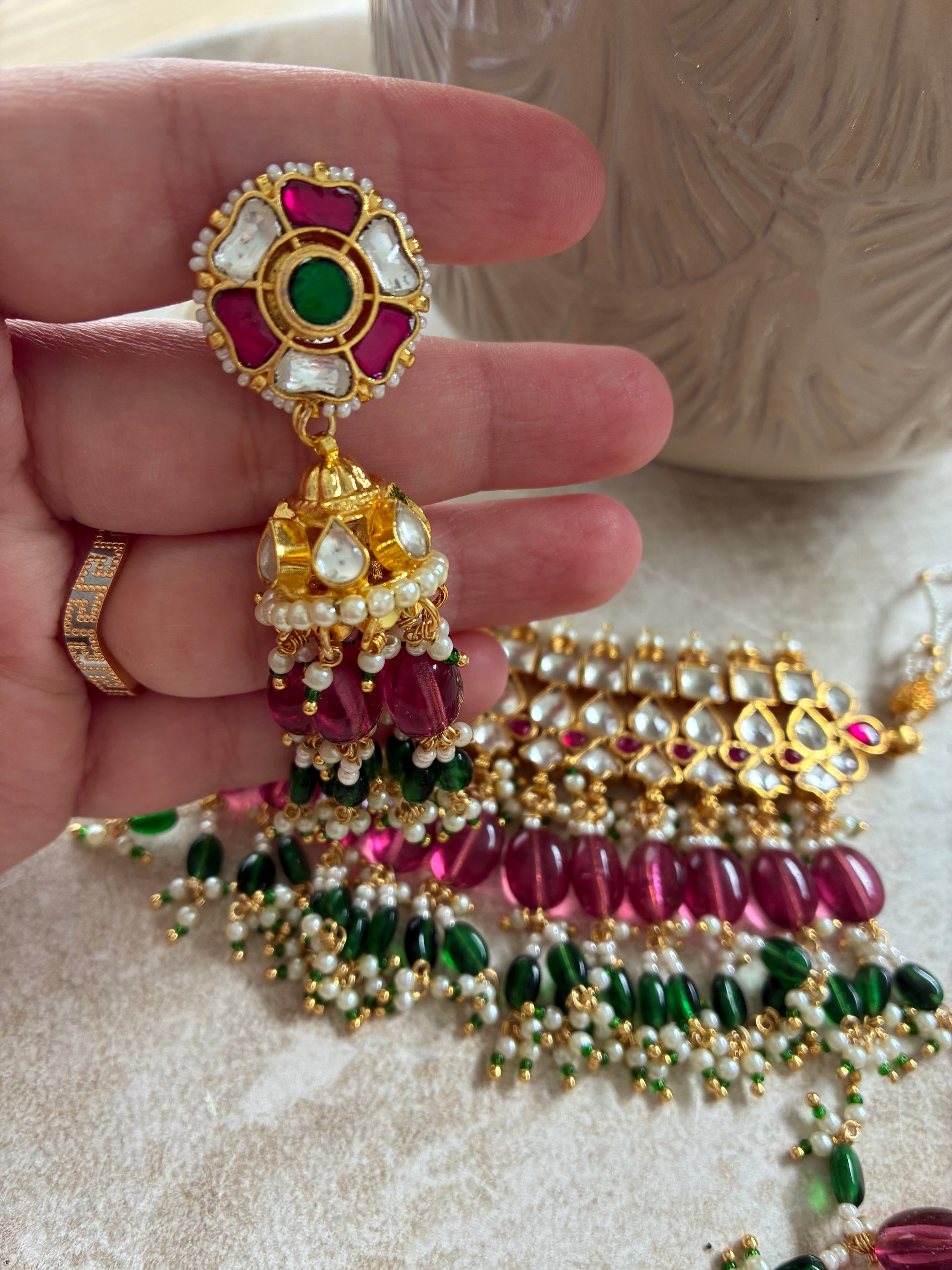 Luxury Gold Plated Paachi Kundan Necklace with earrings