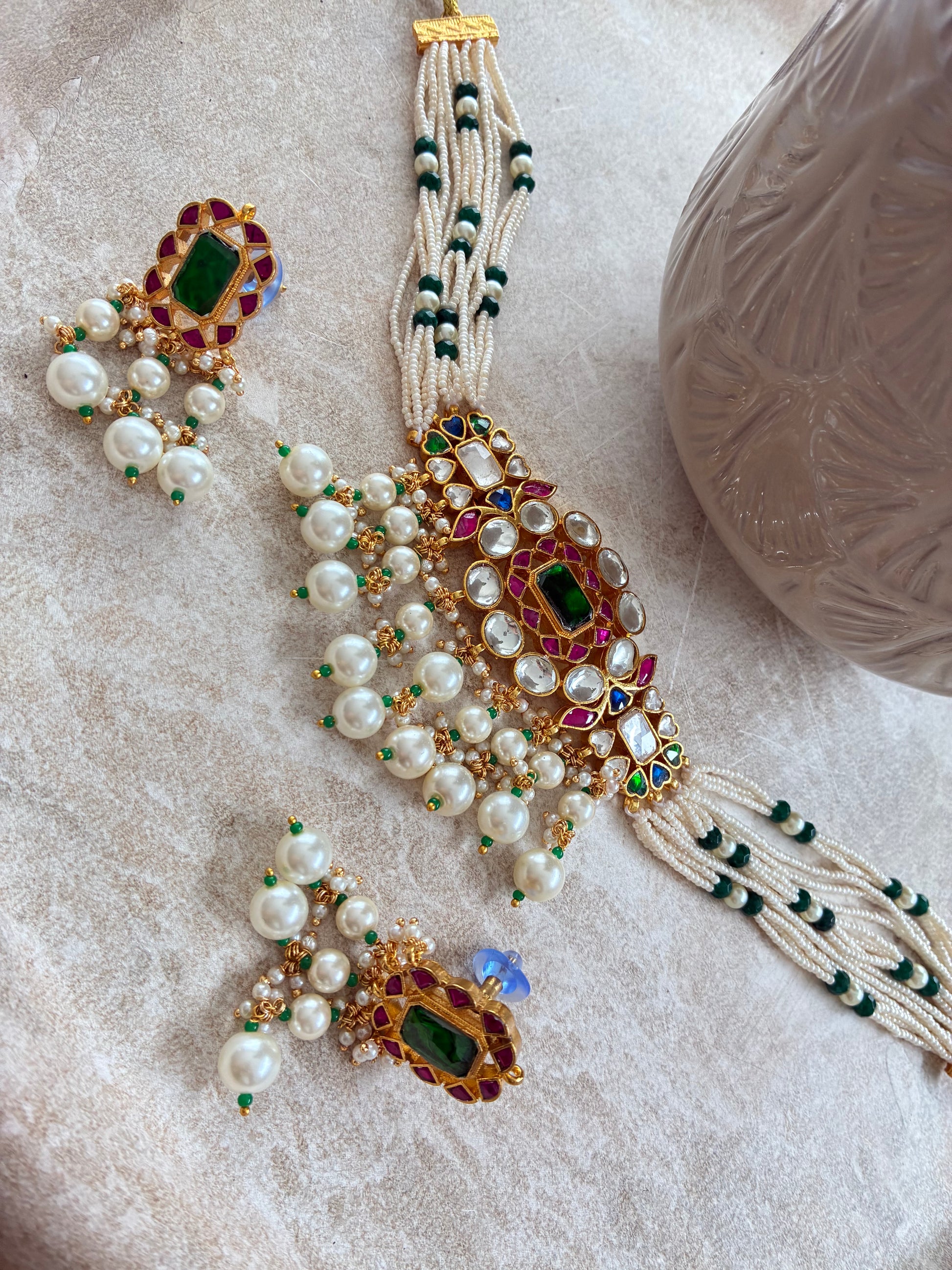 Luxury Gold Plated Paachi Kundan Necklace with earrings