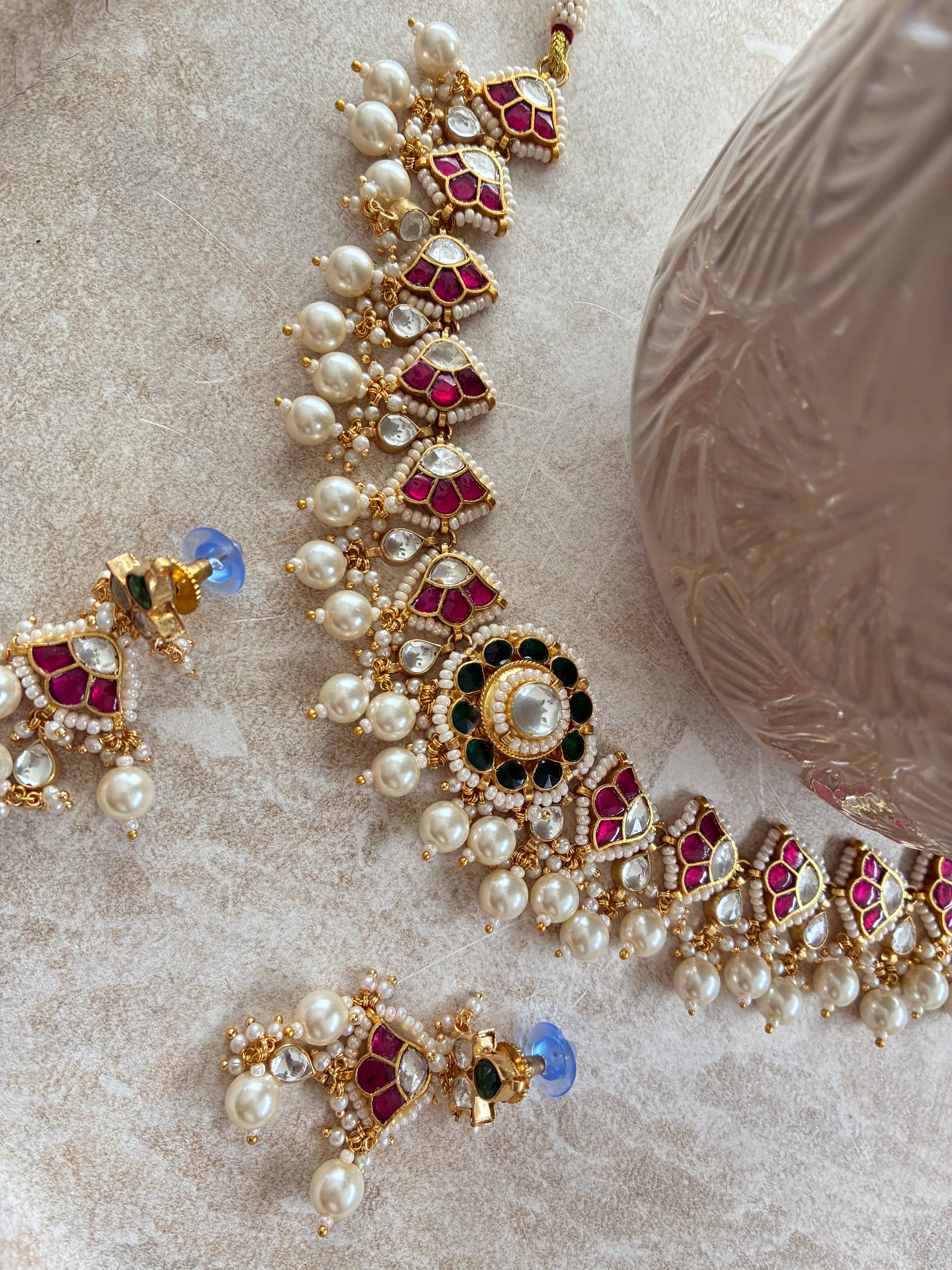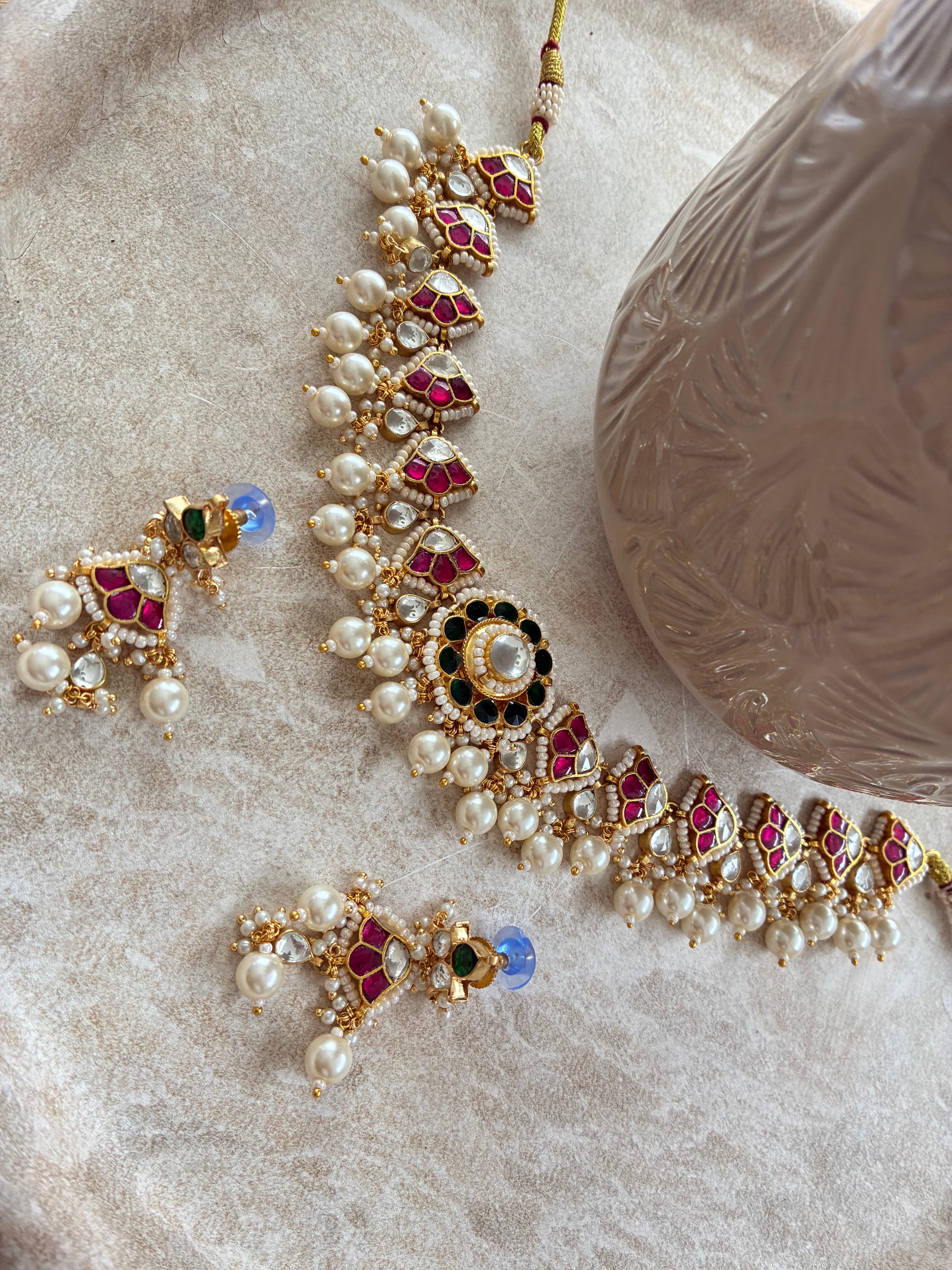 Luxury Gold Plated Paachi Kundan Necklace with earrings