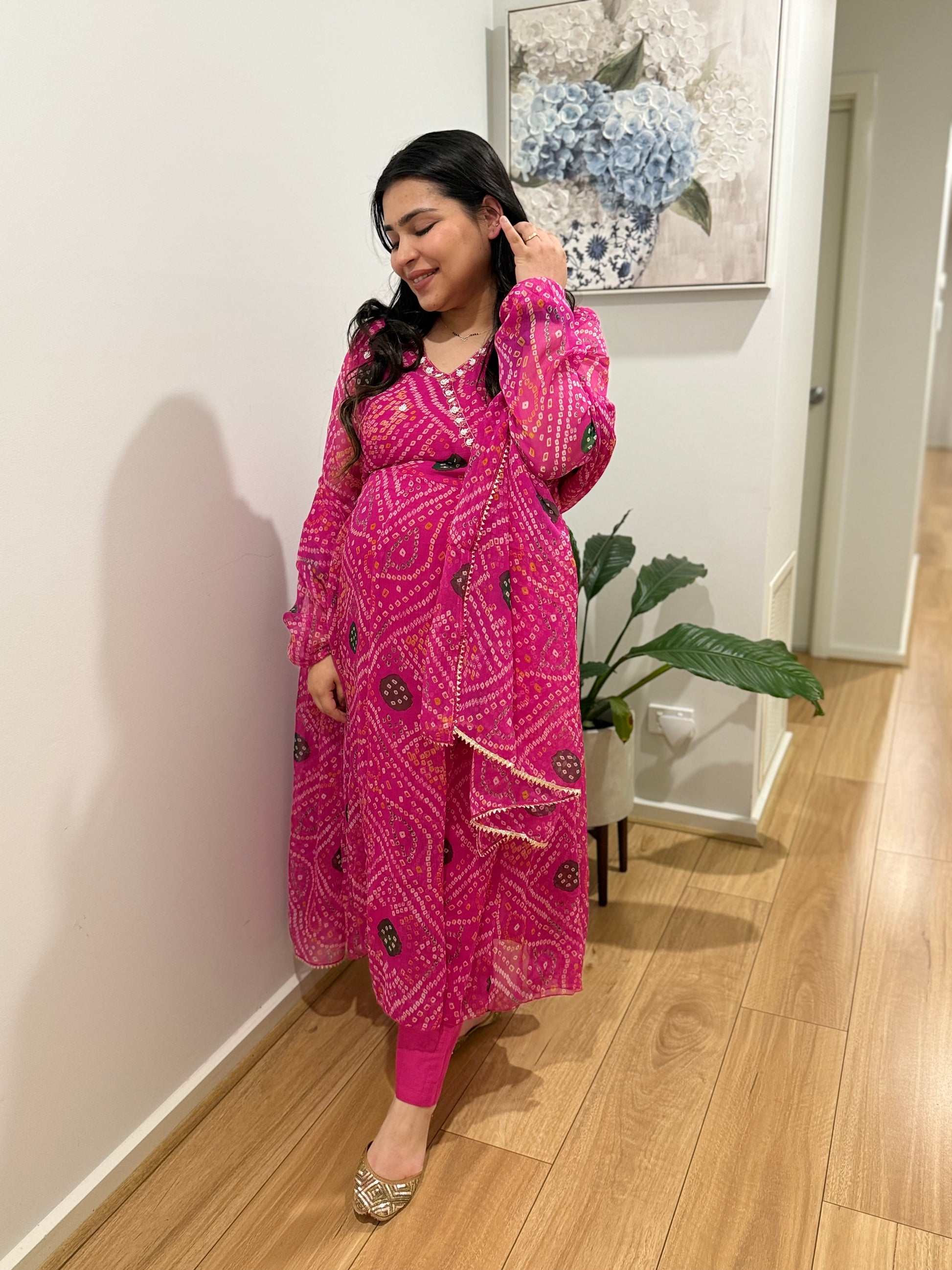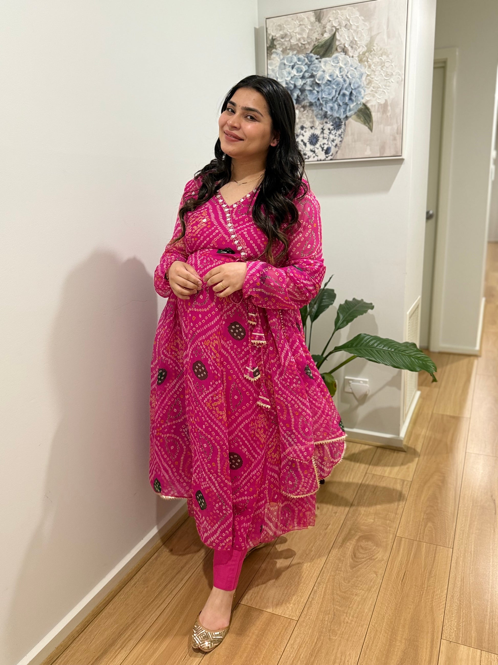 Premium quality chiffon anarkali with lining, pants and chiffon dupatta included.