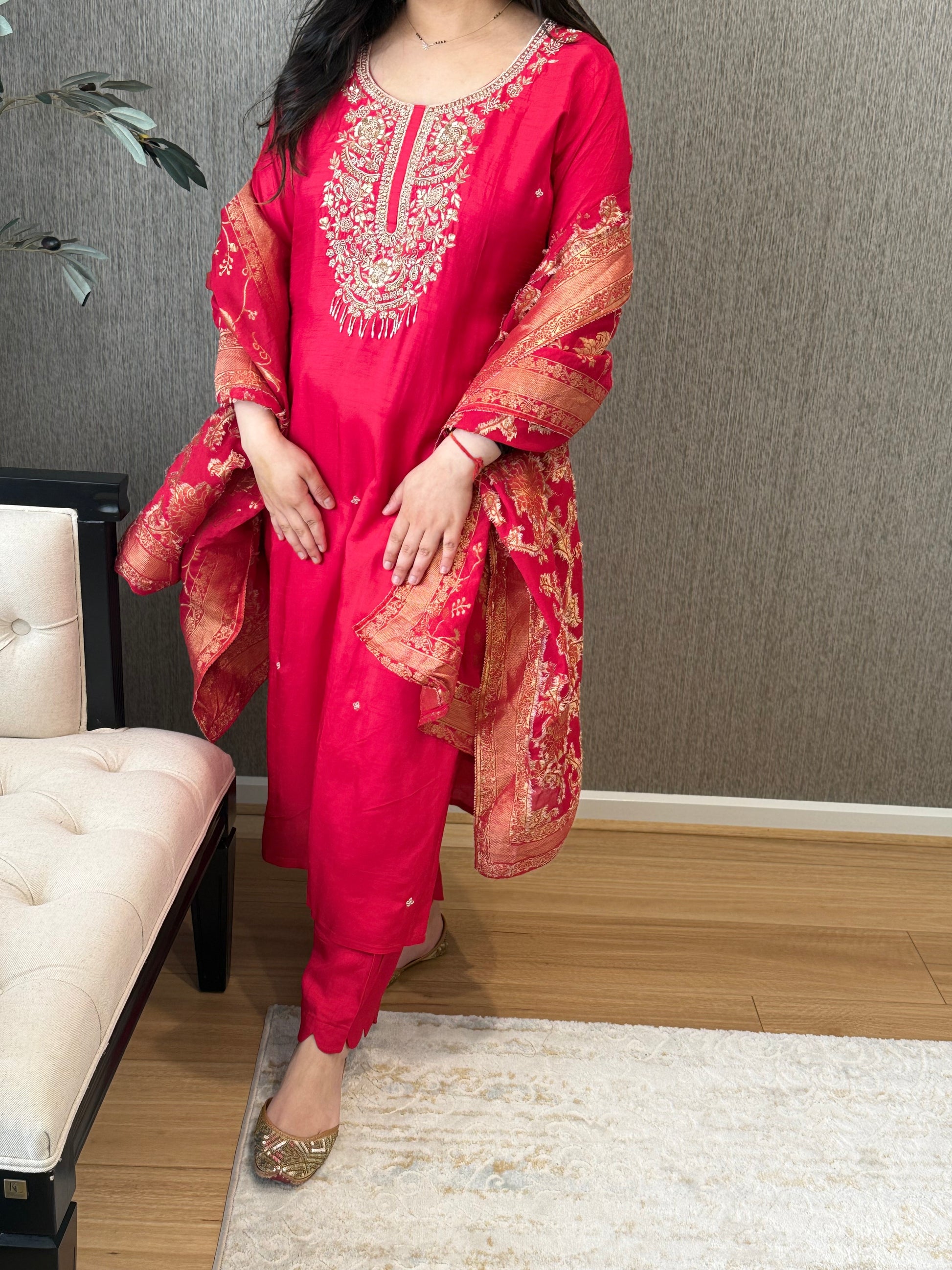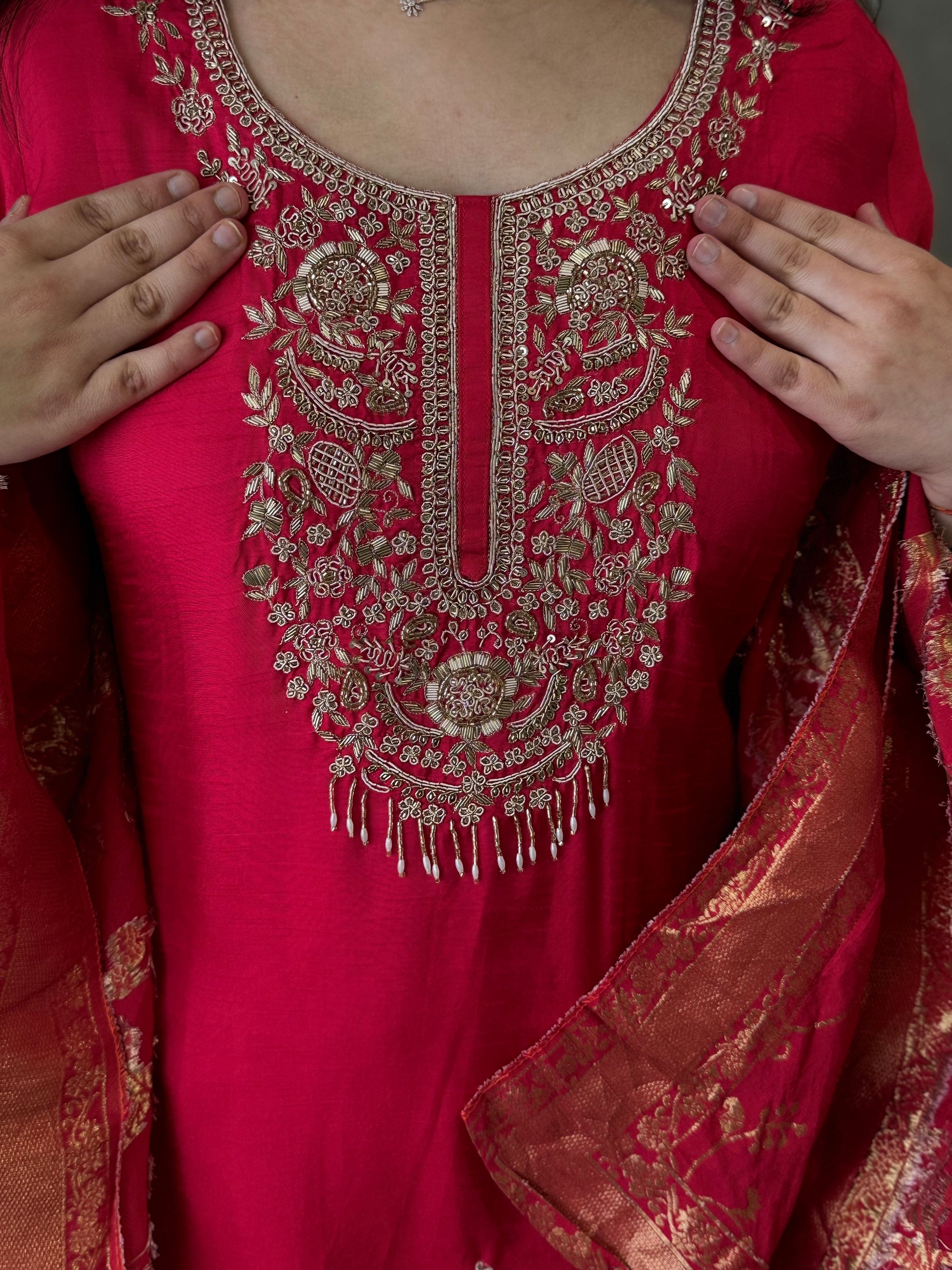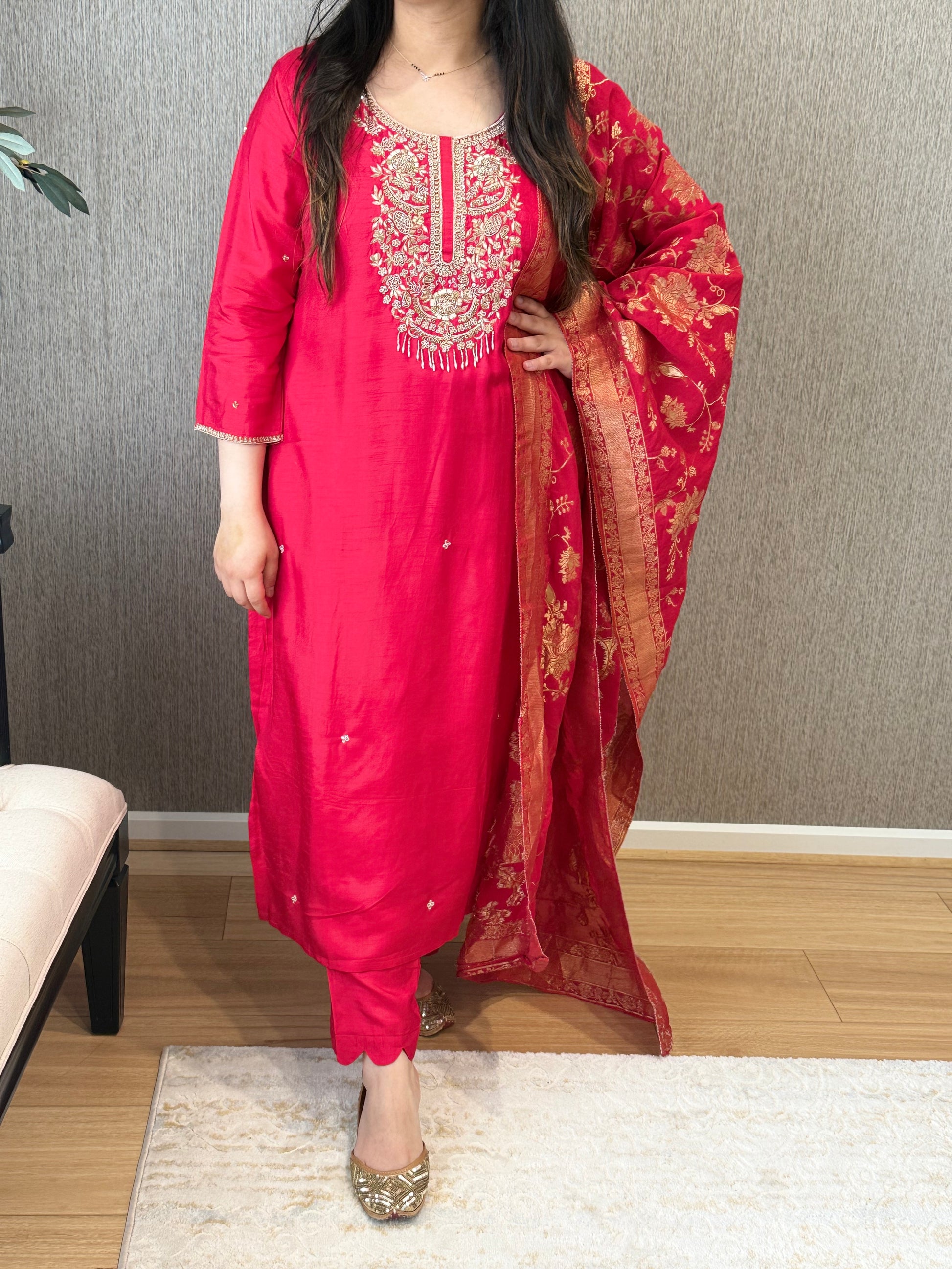 Premium quality silk suit with banarsi dupatta and muslin pants